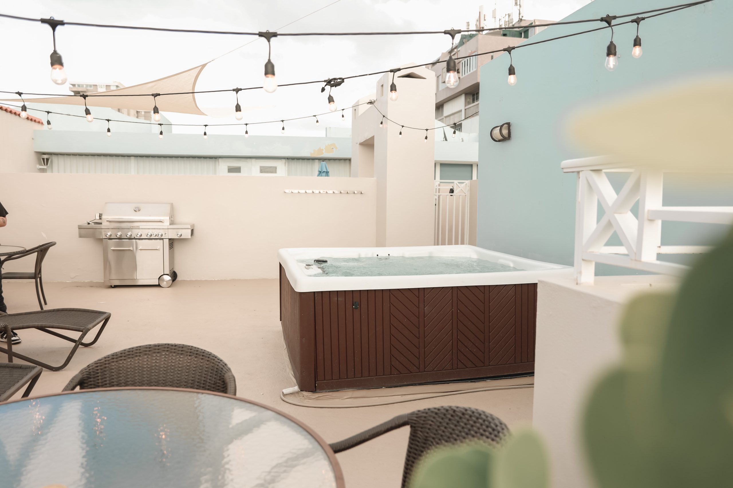 Welcome to Family Beach Penthouse were our centrally located accommodation is completely family-friendly with a divine location as you can go walking 2 minutes to Playa Azul Beach in Luquillo PR & is 40 minutes from SJU airport and minutes from pharmacies, restaurants & much more. This wonderful place is on the 5th floor, with an elevator, private parking for 2 vehicles, private terrace, private jacuzzi, BBQ, outdoor shower, table games, equipped kitchen, 3 bedrooms for 10 guests, 3 bathrooms, laundry, dining room and living room. Our unit consists of two levels, on the first level is the fully equipped kitchen, living room, laundry room with washer and dryer and a full bathroom. The master bedroom has its own bathroom and has a king bed that fits two people, the second bedroom has two twin bunk beds each that fits four people and a third bedroom on the second level with a twin bunk bed and a full bed that fits four people. Right in front of this third bedroom there is a fully equipped bathroom and the entrance to the terrace area. Near of tourist friendly spots such as Beaches, the Rainforest, restaurants and attractive tourist spots around.