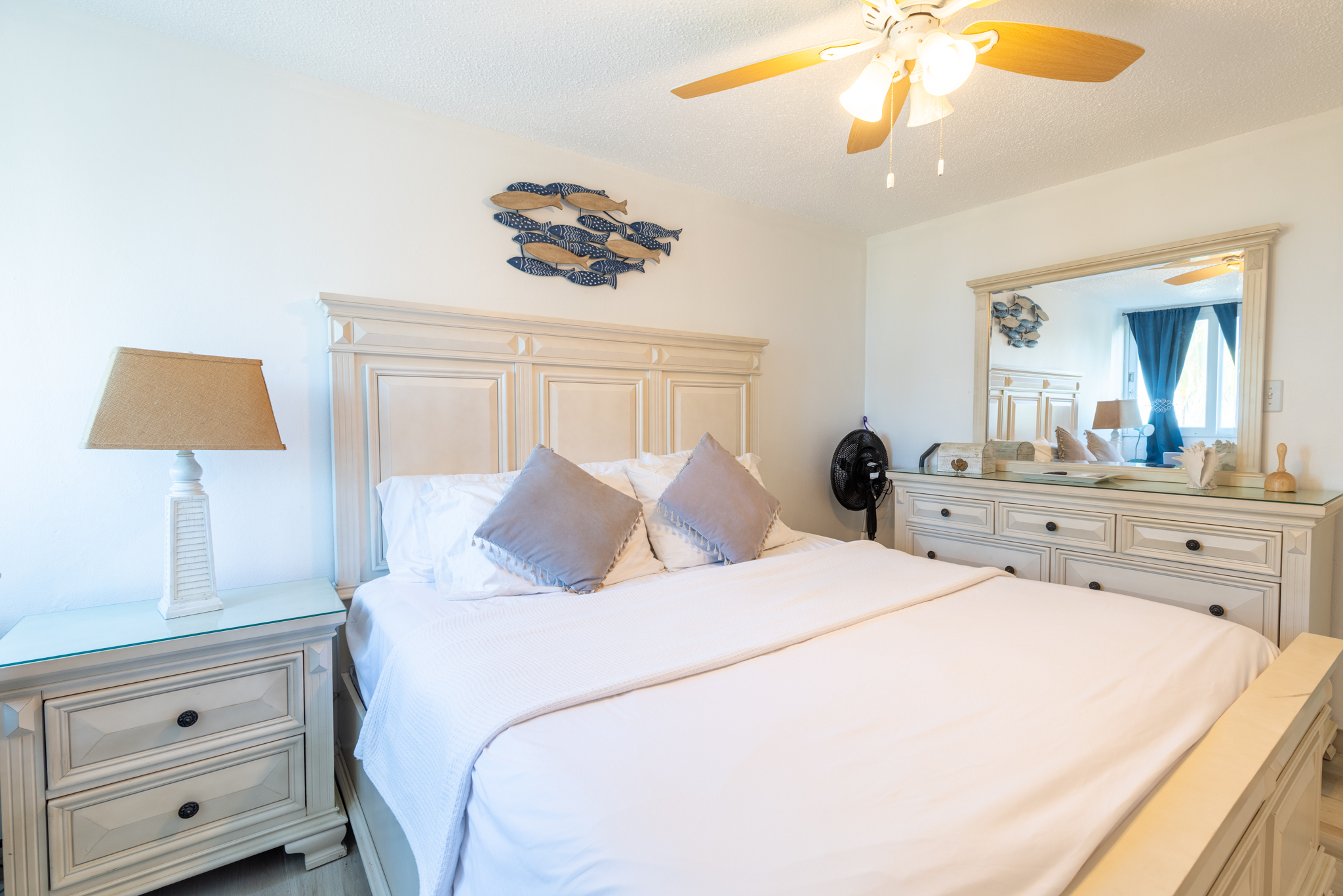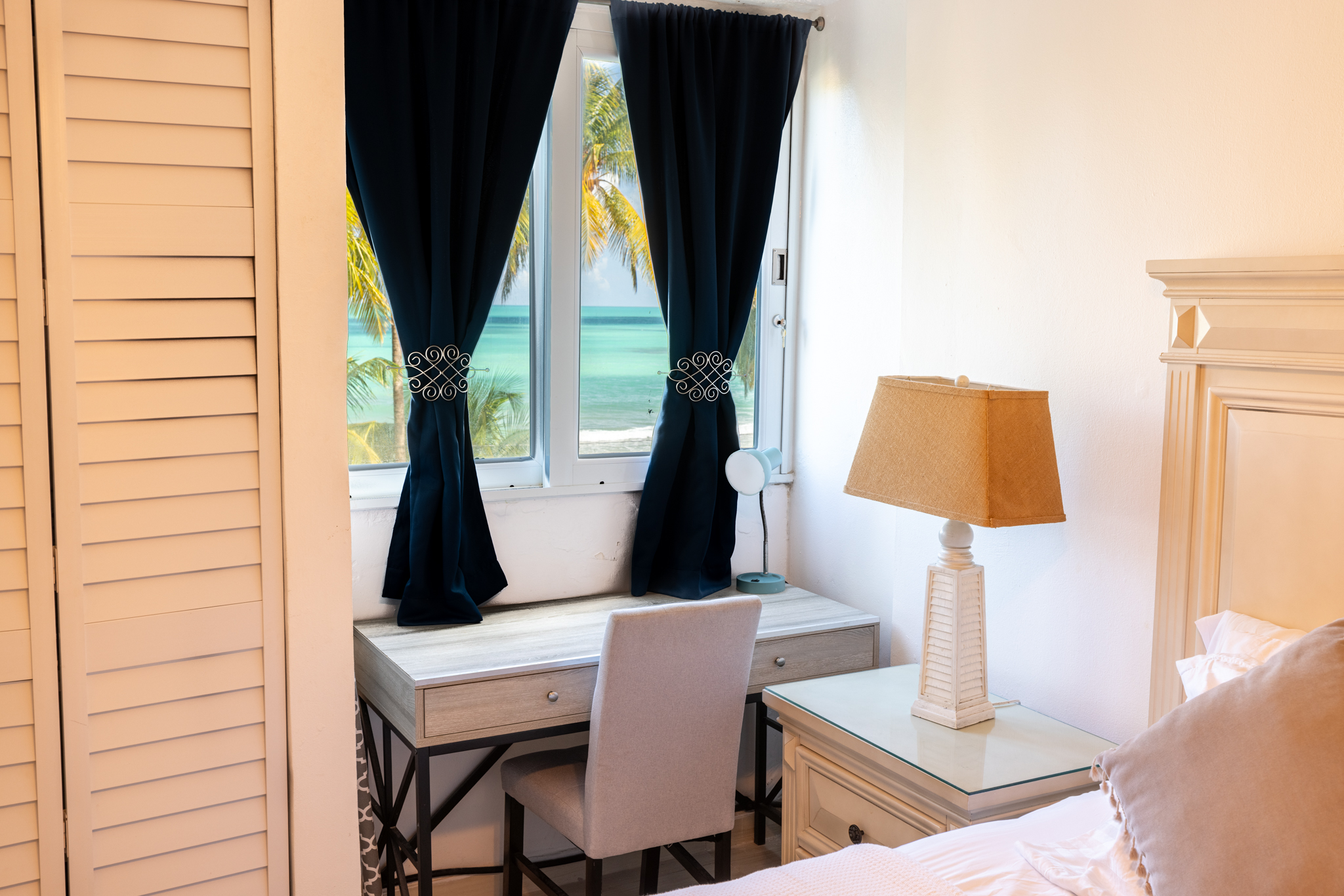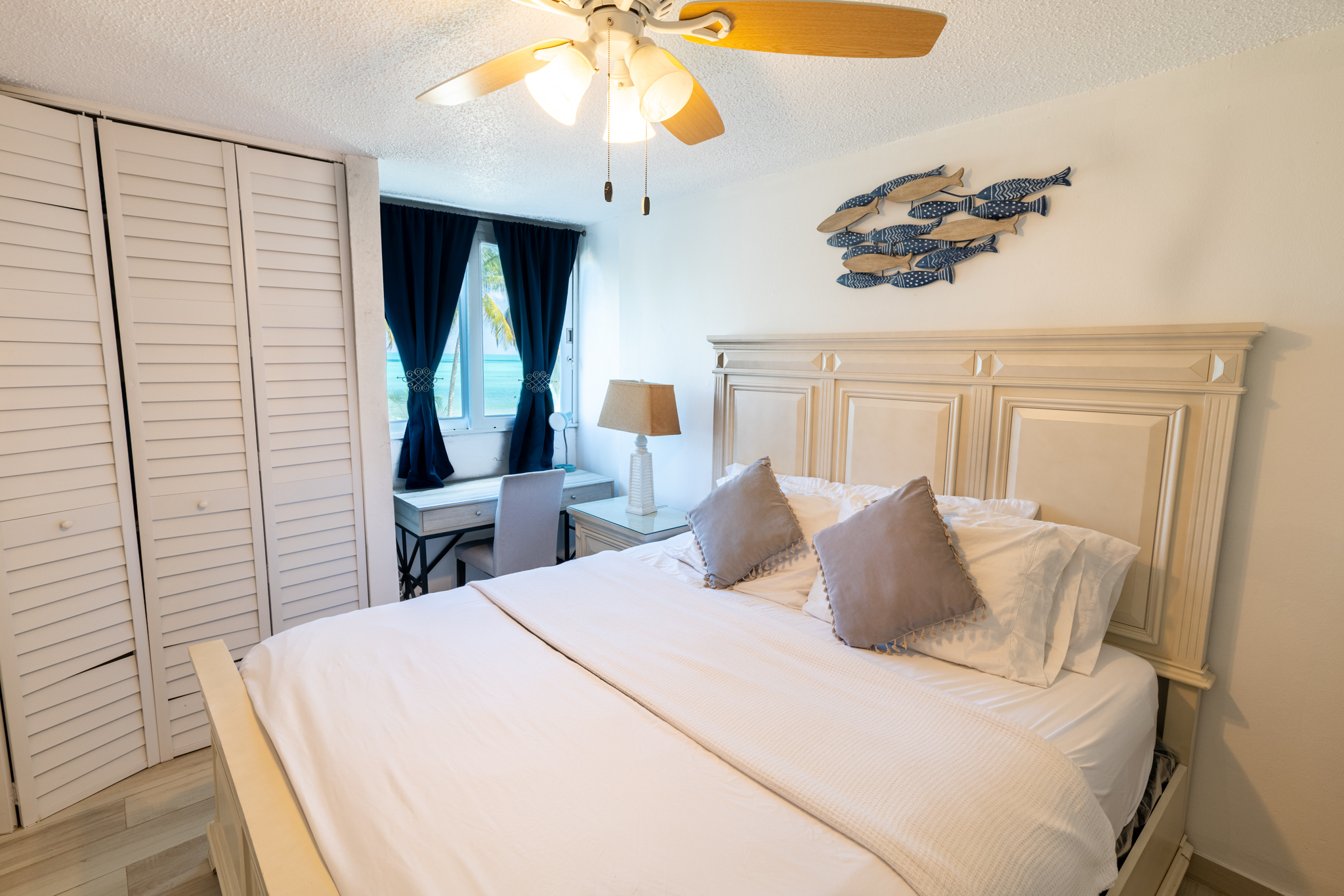 This beautiful beachfront apartment for 2 adults 👩❤️👨 offers a spacious king bedroom 🛏️, a comfortable living room with Smart TV 📺, a dining area for 4 🍽️, and a fully equipped kitchen 🍳.