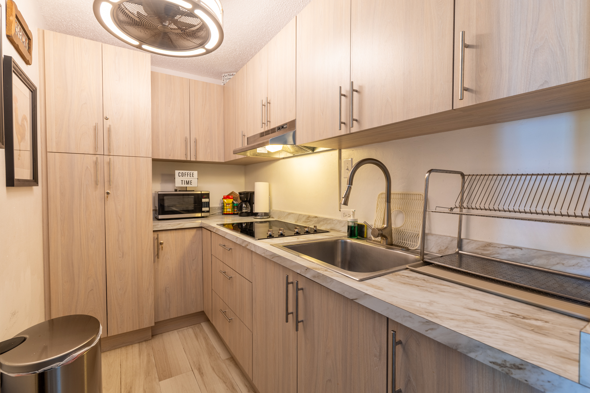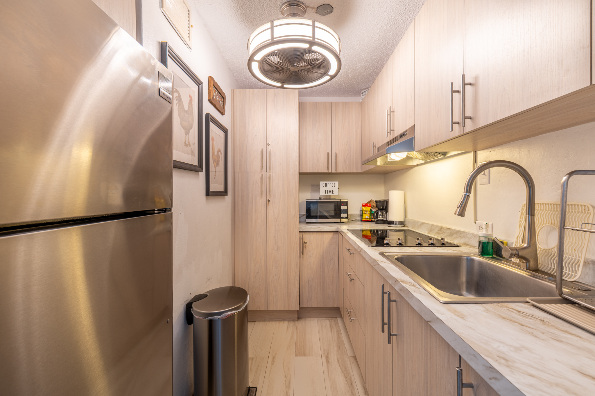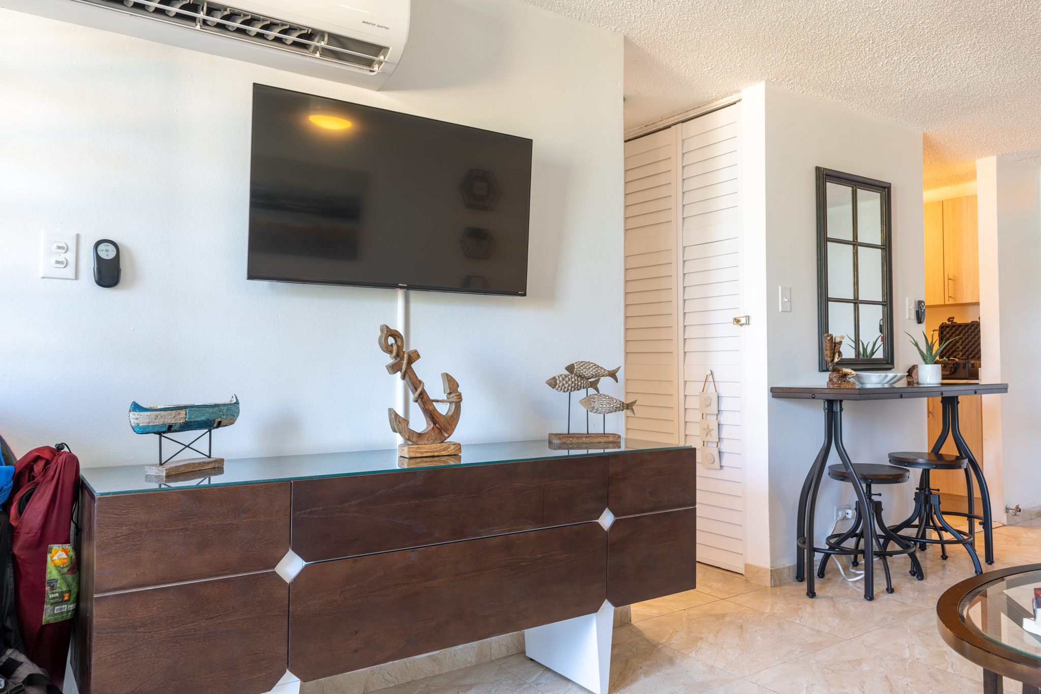 This beautiful beachfront apartment for 2 adults 👩❤️👨 offers a spacious king bedroom 🛏️, a comfortable living room with Smart TV 📺, a dining area for 4 🍽️, and a fully equipped kitchen 🍳.